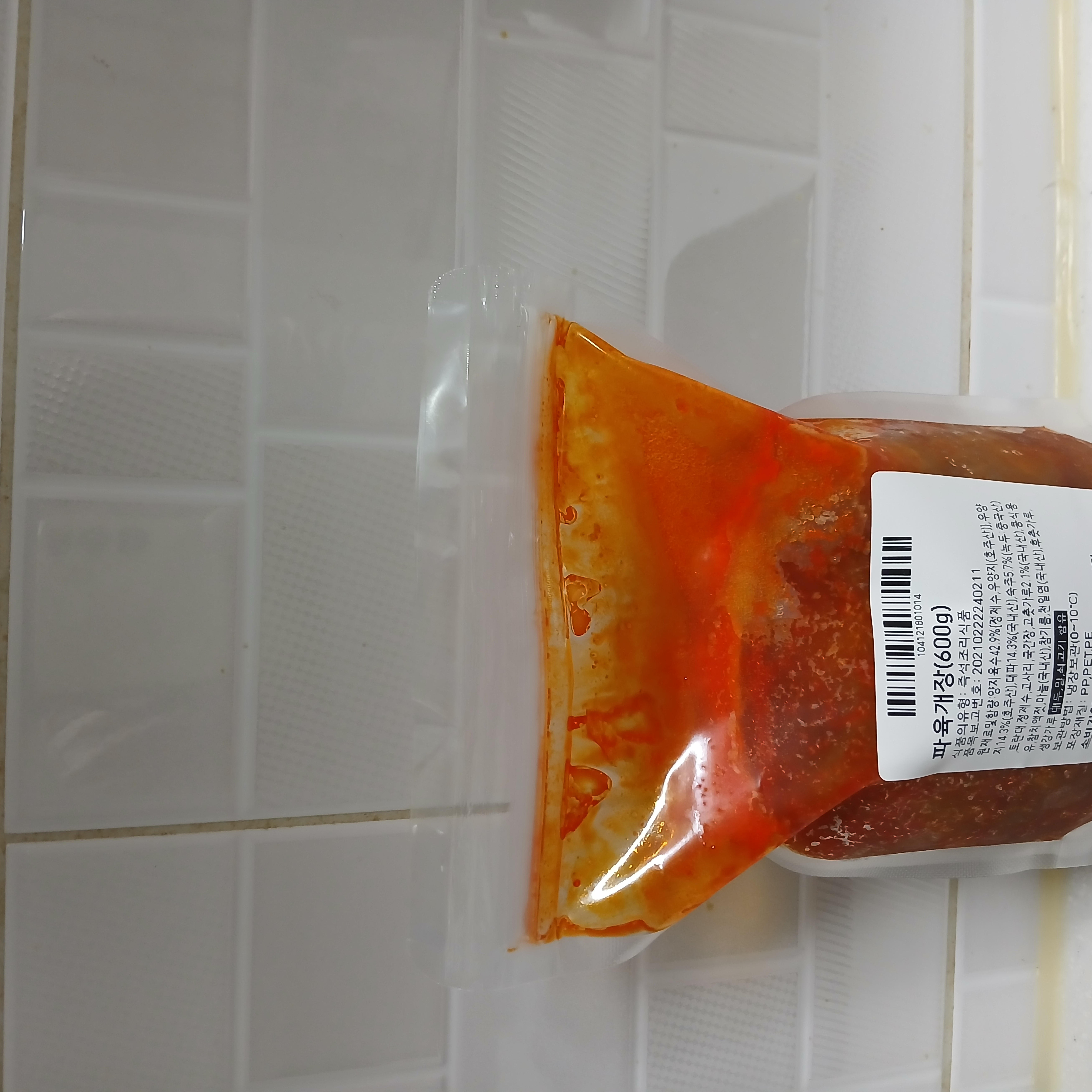 | 원재료명 및 함량 | 고기육수42.9%{정제수,우사태(호주산)},우사태14.3%(호주산),대파14.3%(국내산),숙주5.7%(녹두:중국산),토란대5.7%,정제수,고사리2.9%,국간장2.1%,고춧가루2.1%(국내산),콩식용유2.1%,참치액젓,마늘,참기름,천일염(국내산),후춧가루,생강가루/대두,밀,쇠고기 함유 |