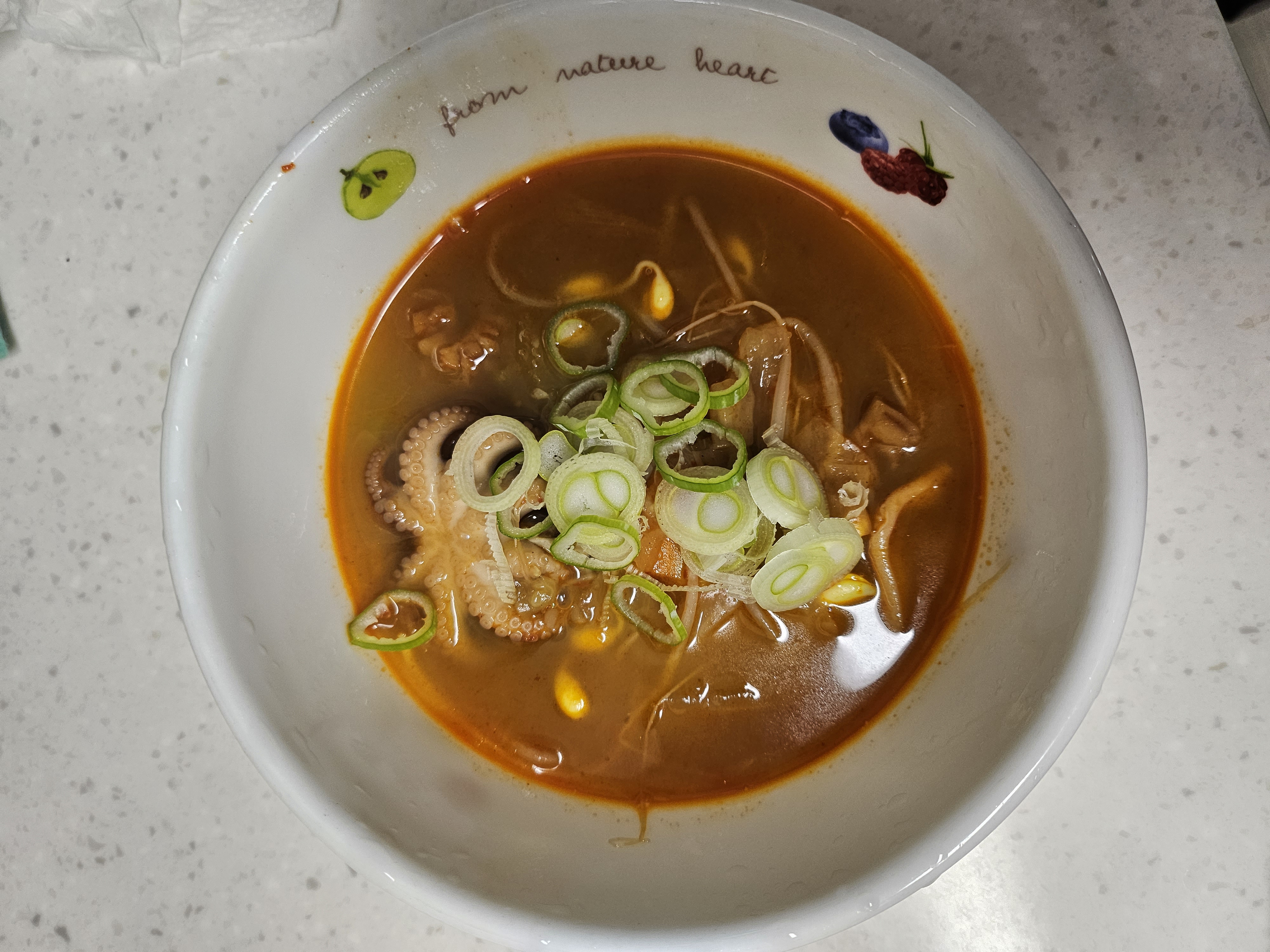 짬뽕 국물이었어요~ 더 많이 먹고 싶어서 콩나물이랑 냉동실에 있던 소라랑 더 넣고 끓여서 맛있게 잘 먹었답니다~