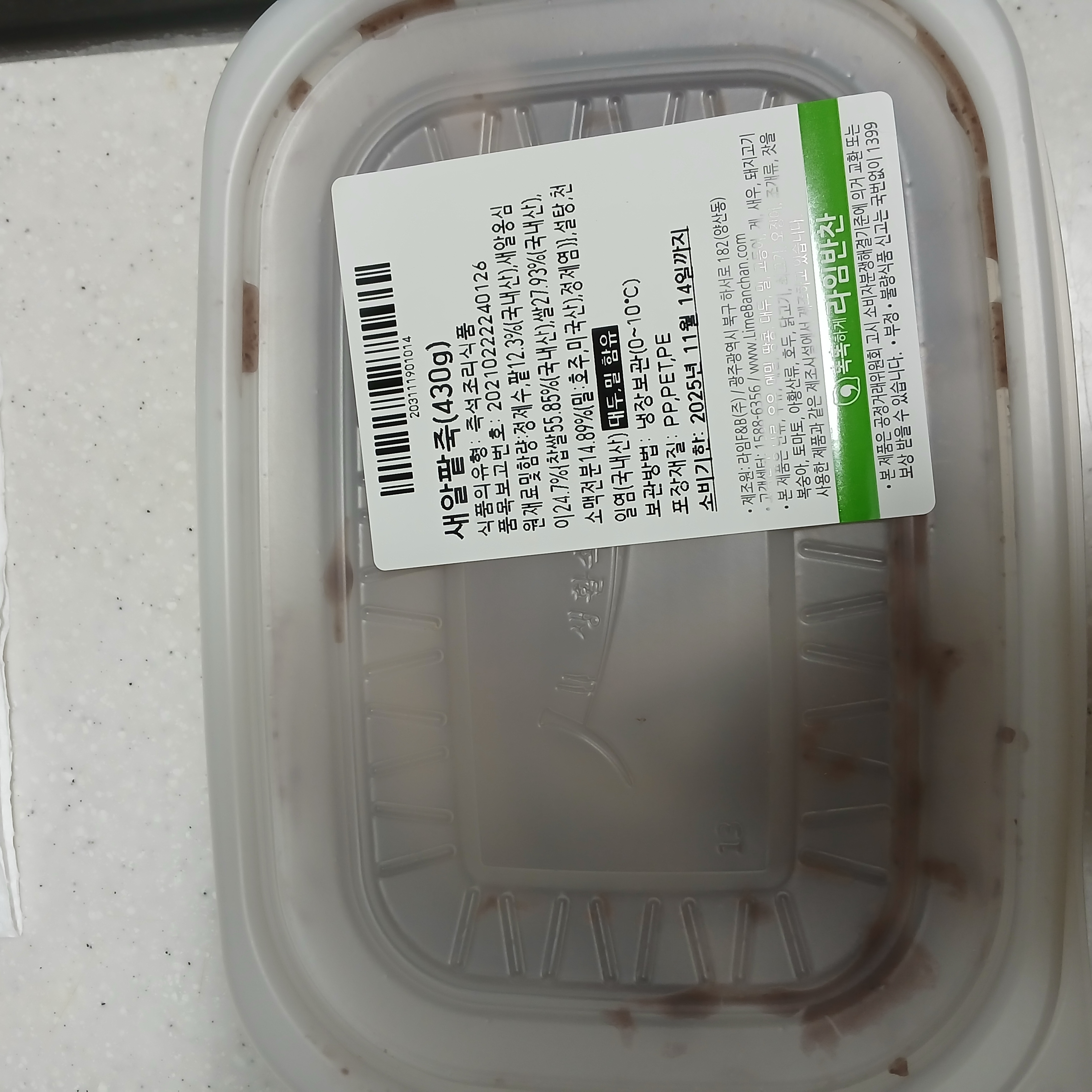 | 소비기한 | 제조일로부터 냉장 3일 |