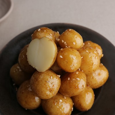 | 원재료명 및 함량 | 알감자58.1%(국내산),멸치육수32.3%{정제수,무(국내산),양파(국내산),대파(국내산),멸치,디포리,다시마},조청3.2%(쌀:수입산),물엿,간장,저염간장,콩식용유,마늘,정제수,볶음참깨/대두,밀 함유 |