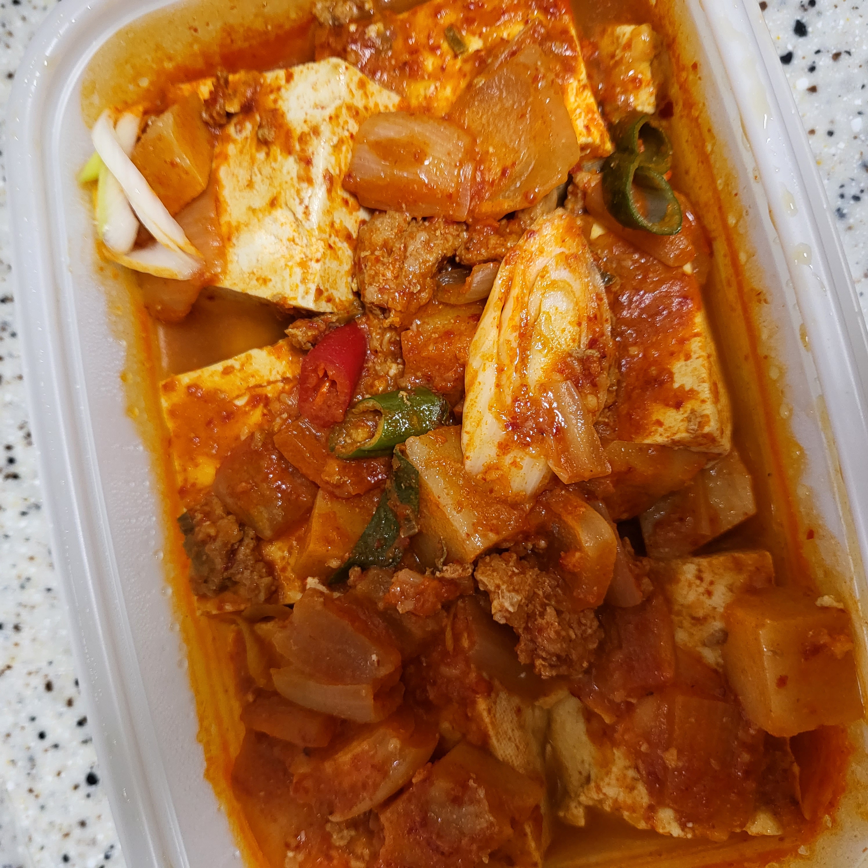 적당히 빨간양념 좋아하는 첫째가 너무 잘~먹어요.. 굳굳굳 진심 뜨슨 밥에 두부 한조각 넣고 쓱 비벼줌 잘 먹어요 고기 감자 파 다양하게 들어가있어 좋아요... 다른 반찬이 필요 없어요.. ㅎㅎㅎㅎ