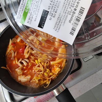 냄비에 물살짝 넣고 재료 통째 붓고 팔팔끓여먹고