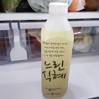 친정엄마가 해주시는 식혝랑 맛이 거의 흡사해요 달지 않아 넘 맛있어요 아들이 젤 좋아하는 식혜~ 지금까지 사먹은 식혜중 최고라네요 매장에서도 벌써 몇개나 사먹었는지 몰라요 먹을때마다 항상 맛있어서 아들을 위해 양보합니다 학교끝나고 자전거 타고 오는 아들에겐 시원한 식혜가 최고네요