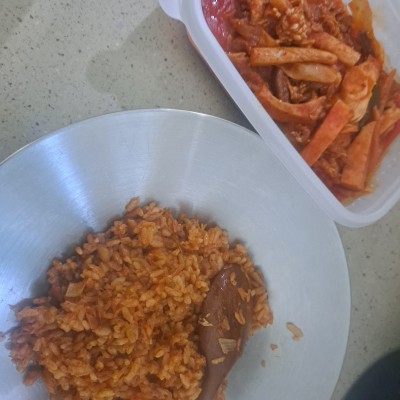 매운거 잘 못먹는 초등생이 매워도 맛있다고 잘먹네요. 달갈후라이도 반숙으로 이쁘게 올려주셔서 포장용기 그대로 먹어도 맛나지만 따뜻하게 먹고싶어서 후라이팬에 데워먹었네요