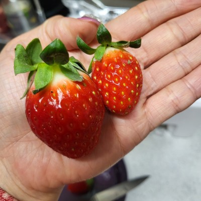 과일은 매일 오전 공판장에서 신선한 제품을 구매하고 있고, 딸기는 저희가 따로 용기에 포장을 하는 것이 아니다 보니 아래쪽에 들어있는 딸기 크기까지는 확인하지 못한듯합니다.